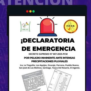 El gobierno central declaro en Estado de Emergencia 333 distritos de 20 regiones del país por peligro inminente ante intensas precipitaciones pluviales, por el plazo de sesenta (60) días calendario, para la ejecución de...